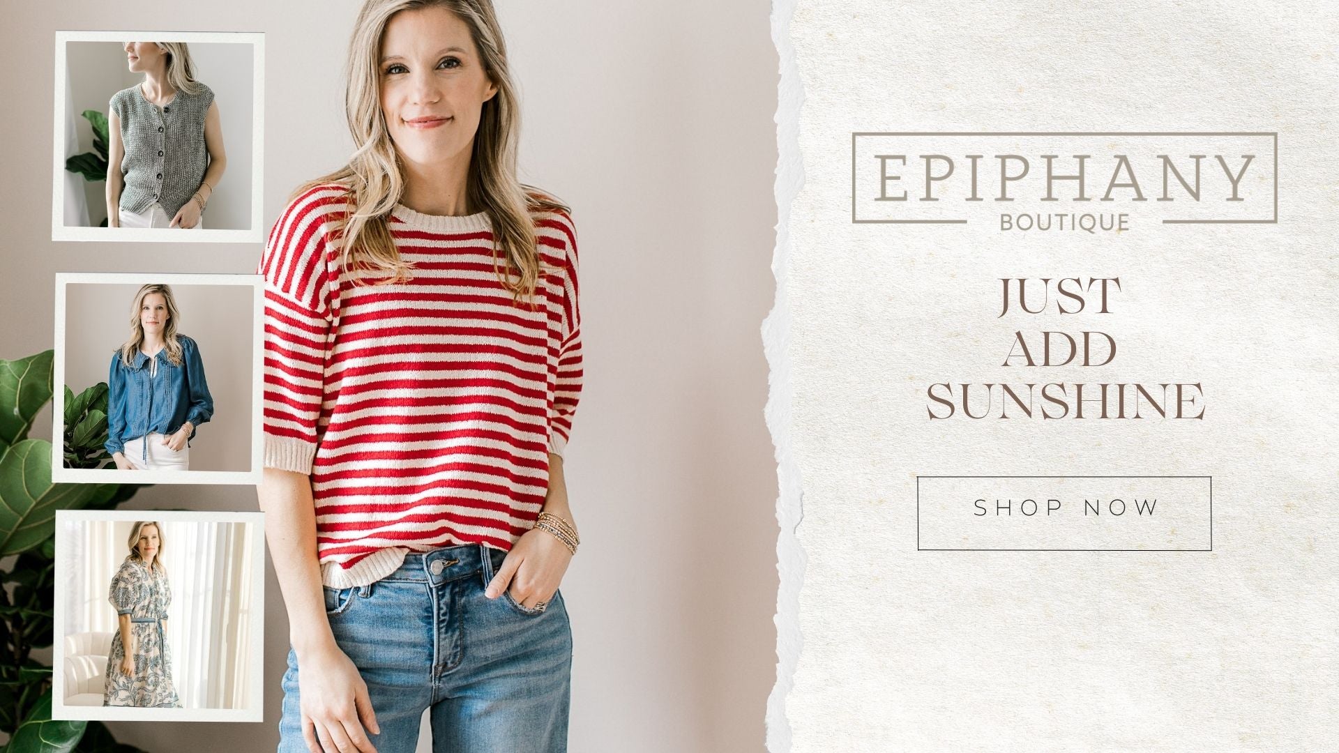 At Epiphany we try to find pieces that let you move through your world with confidence and comfort. We are a mother-daughter team with 9 children between the two of us. We know we all have to do ALL the things; work, parent, grandparent, run all the errands, and occasionally play. We curated these items so you can do all the things incomfortbut without sacrificing your own confident style. We have made it our mission to travel to markets all over the country for the last eight years, touching each item and curating lovely things to wear at prices that are attainable for women in all seasons of life. Our goal is to make you feel confident while you conquer your world!