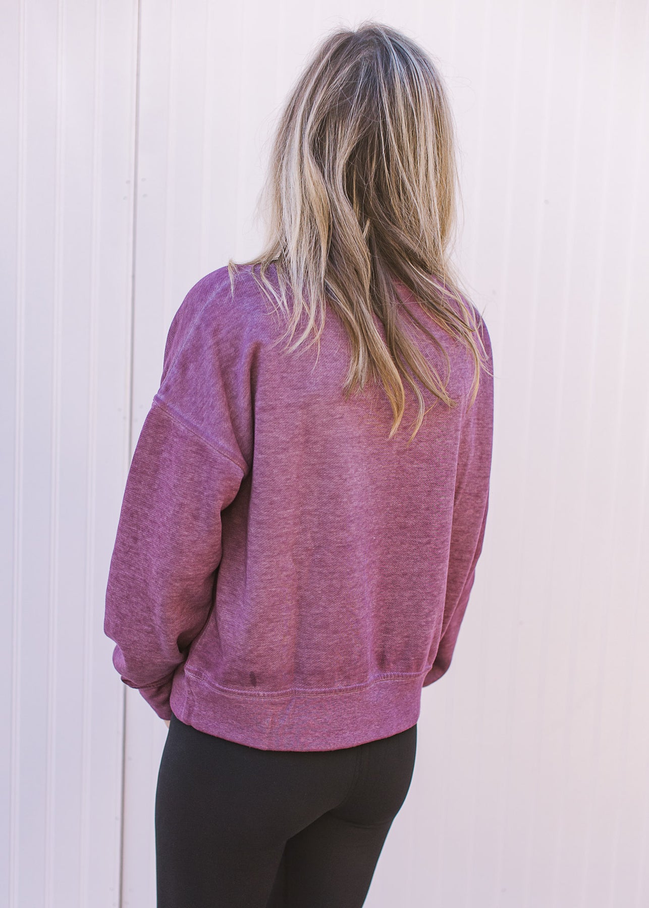 The Acid Wash Sweatshirt in Plum is the kind of piece you’ll reach for again and again. With its soft feel, relaxed silhouette, and rich plum color, it brings comfy-chic style to even the busiest days.