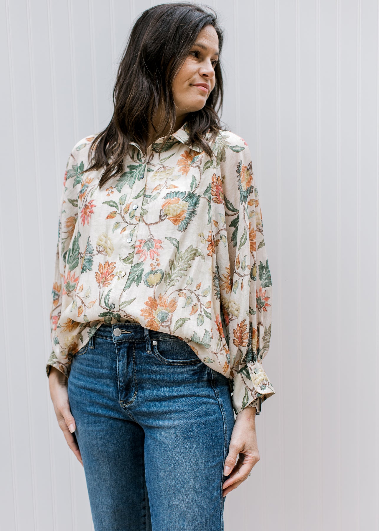 The Fall Flowers Top brings effortless charm to your autumn wardrobe. With its warm floral tones and lightweight feel, this blouse makes seasonal dressing simple and stylish.