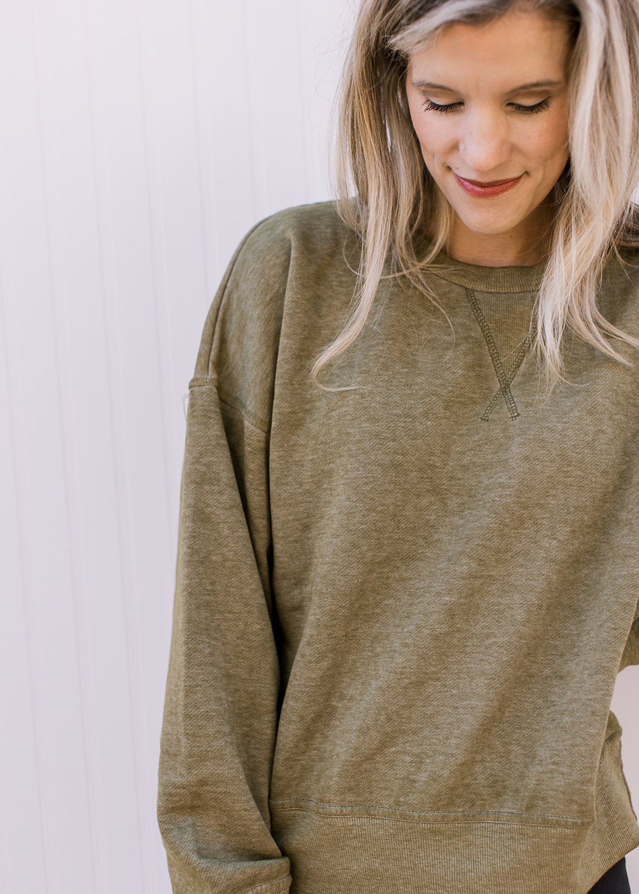 The Acid Wash Sweatshirt in Green is the kind of piece you’ll reach for again and again. With its soft feel, relaxed silhouette, and rich green color, it brings comfy-chic style to even the busiest days.