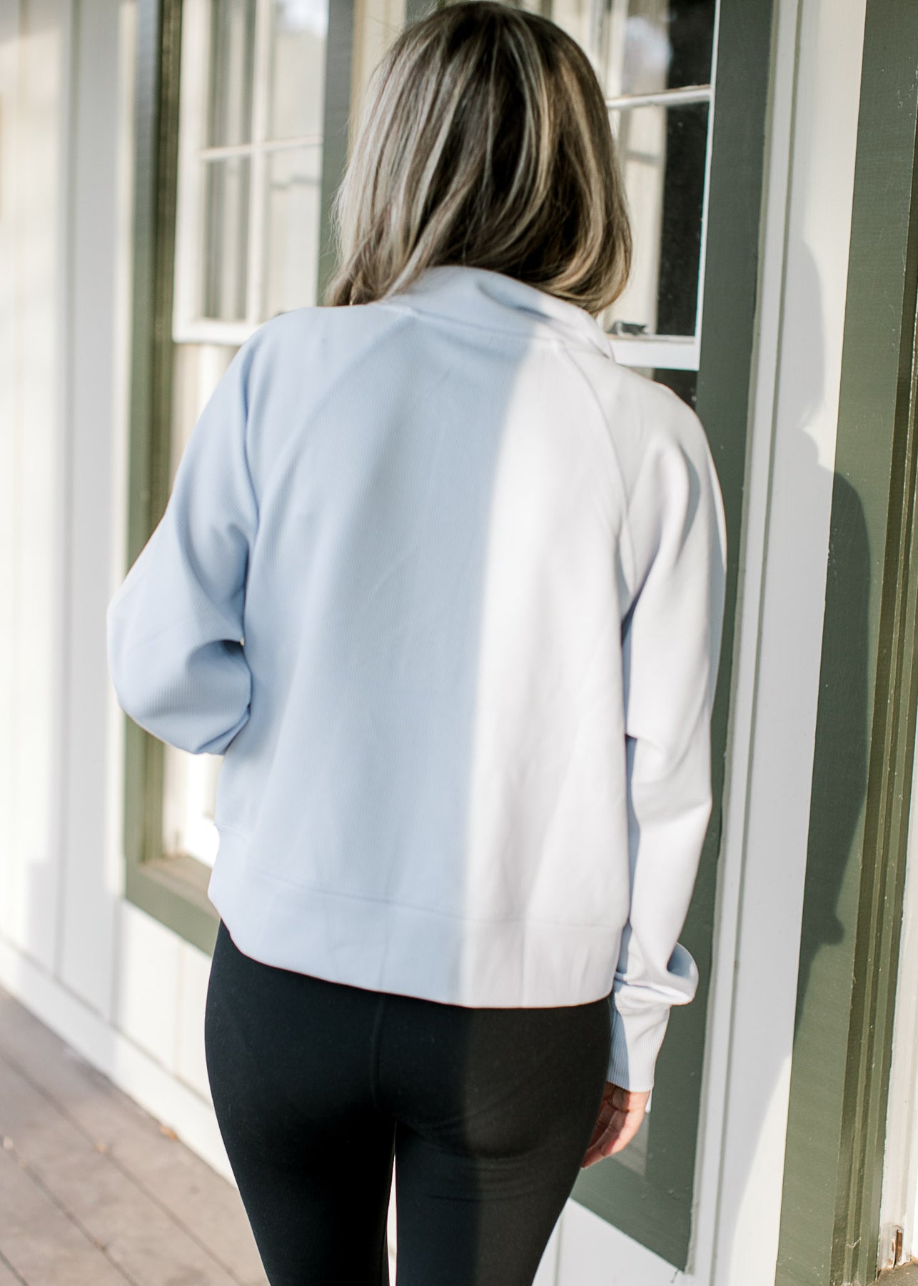 The Halogen Blue Ribbed Quarter Zip offers cozy athleisure comfort with a soft, feminine touch. Its pale blue hue and ribbed texture make it an instant staple for busy mornings, school drop-off runs, or relaxing days at home.