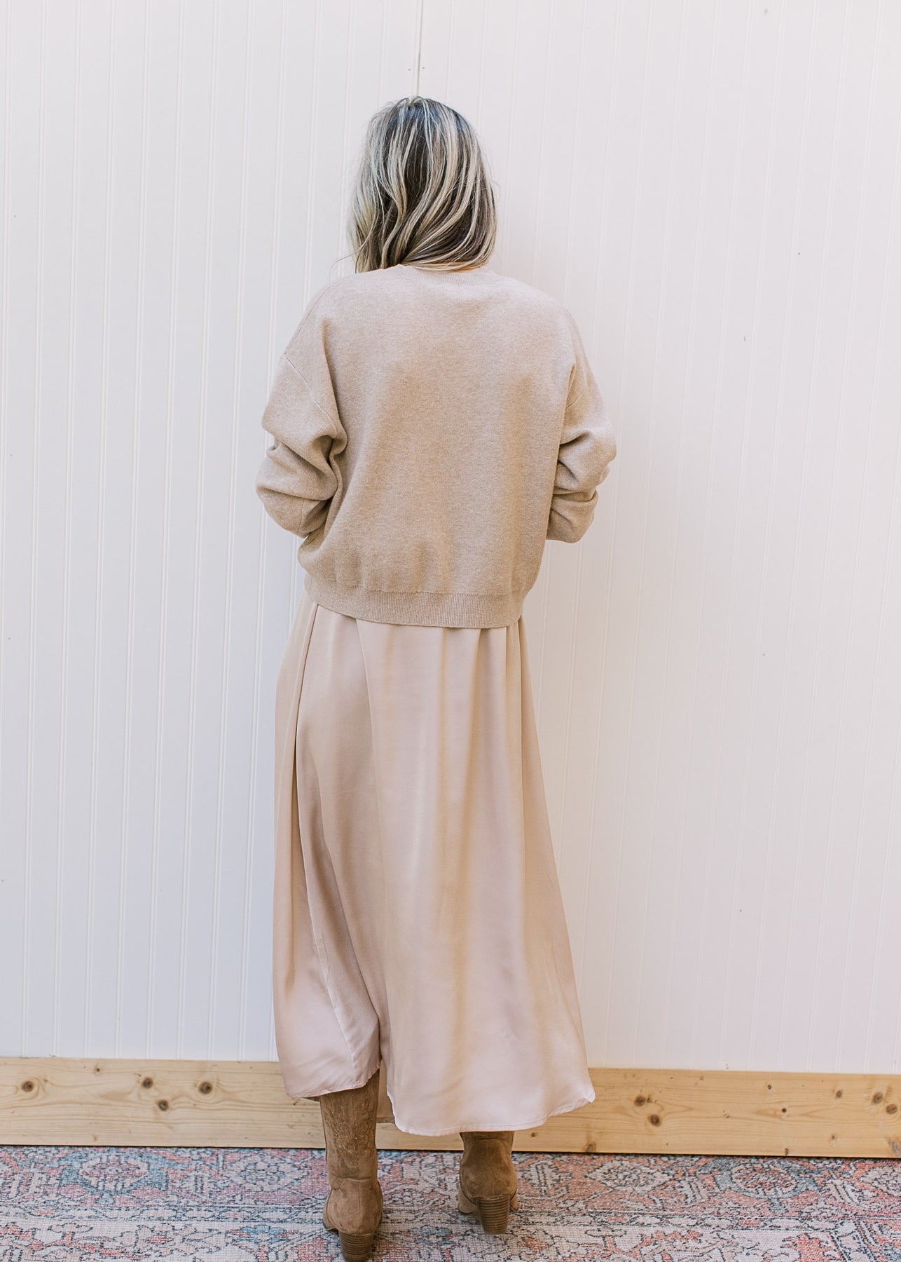 The Champagne Pleat Sweater is simple yet special—soft, lightweight, and easy to wear, but with that little extra detail that makes it stand out.