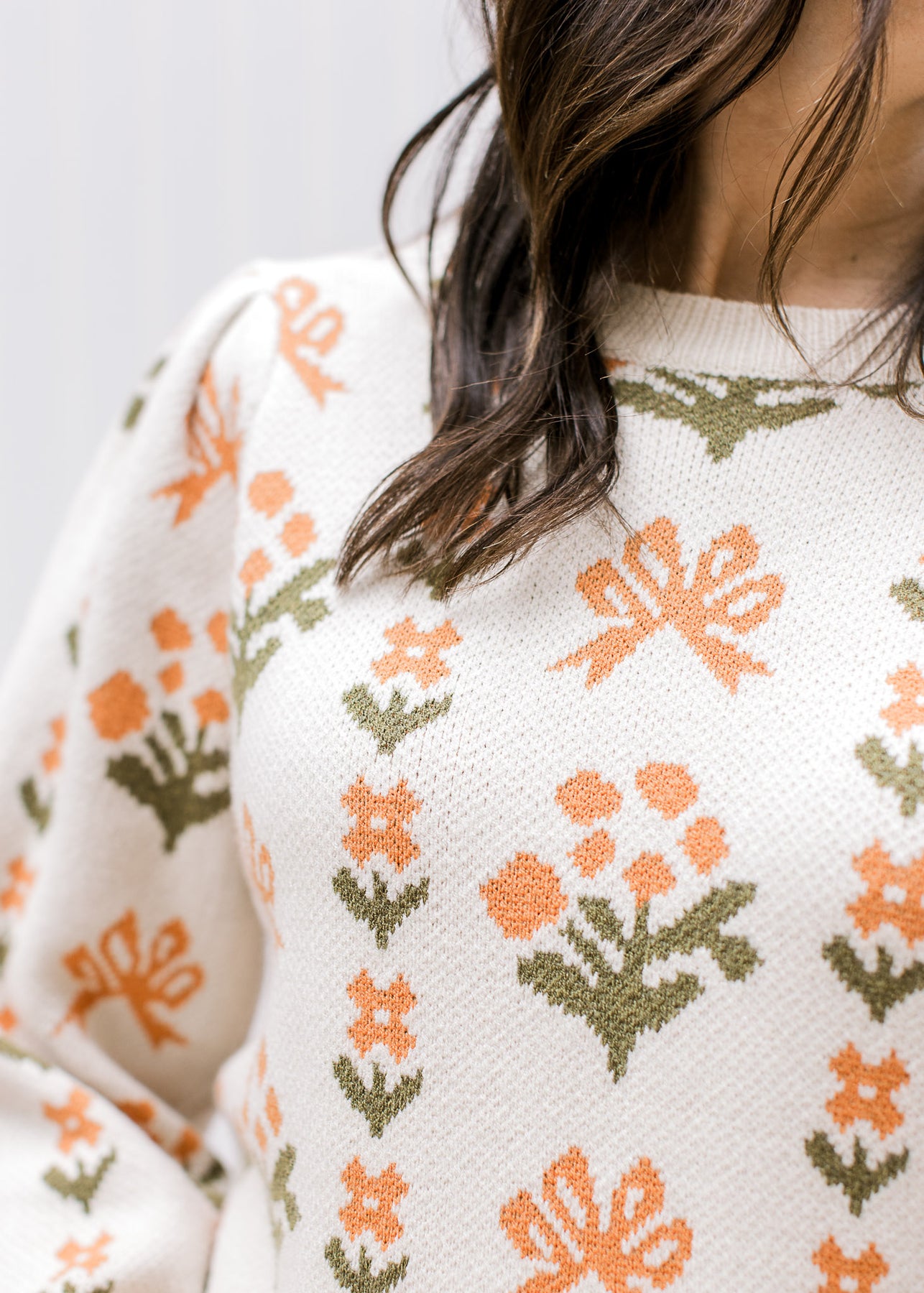 The Creamy Dutch Pattern Sweater makes stepping into fall feel effortless. Crafted from an ultra-soft knit and finished with pleated shoulders and an autumn-inspired pattern, this sweater captures cozy sophistication with ease.