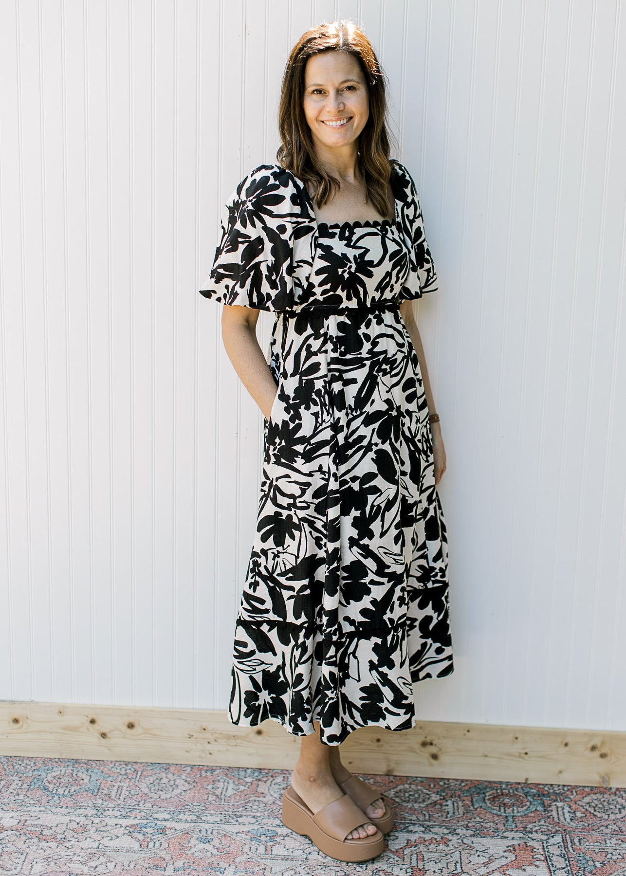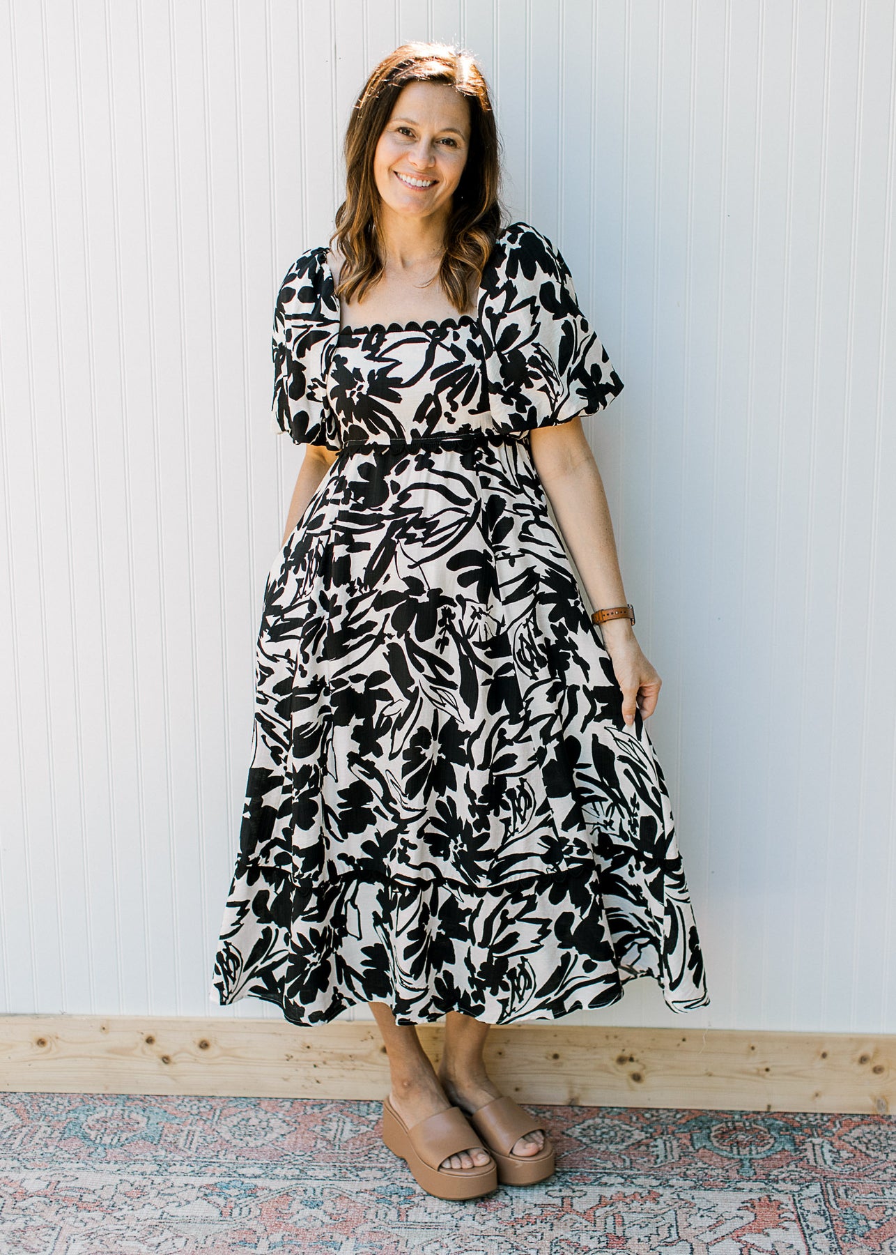 There is so much to love about this dress…it’s a classic. The square neck featuring that scallop detail is so chic and feminine. However, the flatter doesn't stop there, with a smocked back and bubble short sleeves, this elegant piece is will have you looking fabulous!