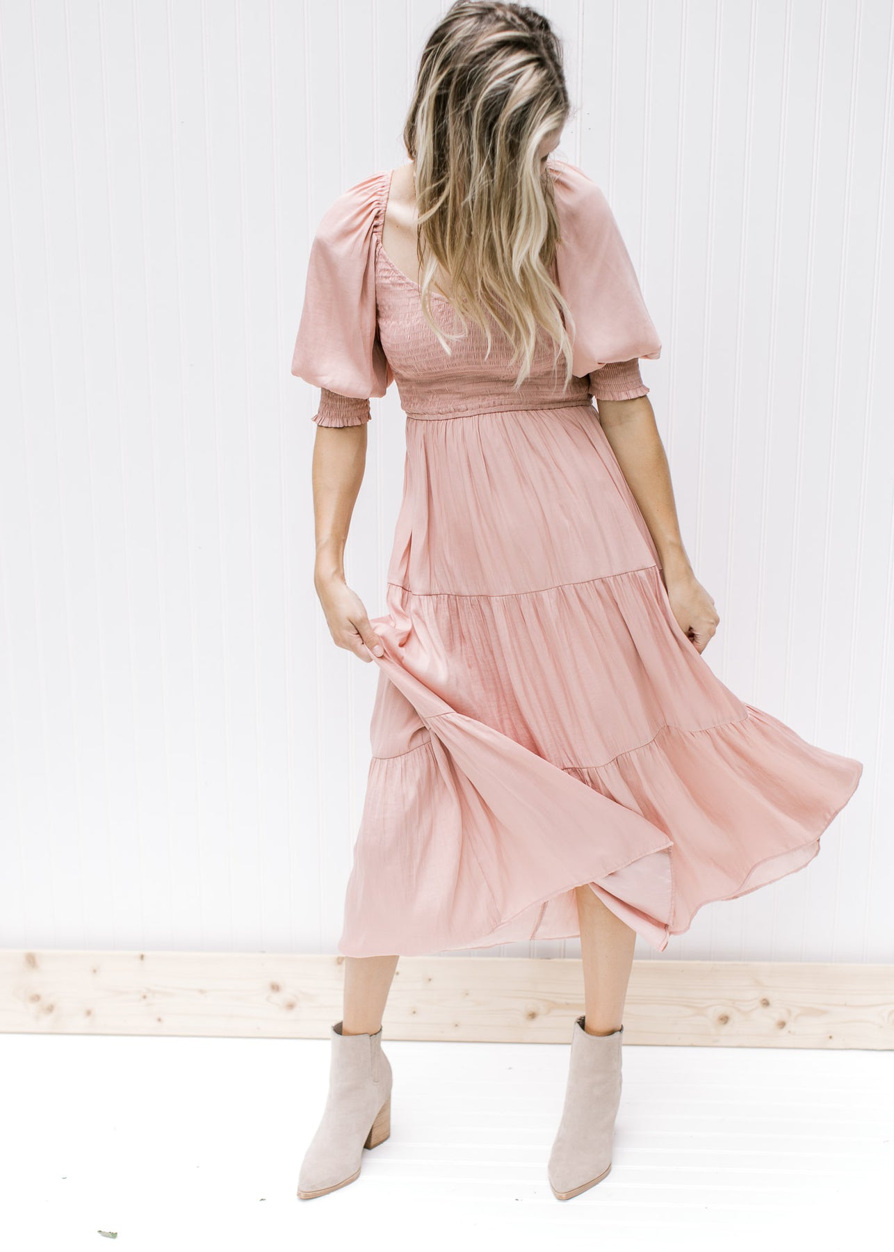 This dress meets all the criteria with comfort, style and flatter! Being fully lined and composed of polyester it is lightweight, checking that comfort box. As for flatter and style, just look at that smocked bodice and bubble sleeves, the dress speak for itself!