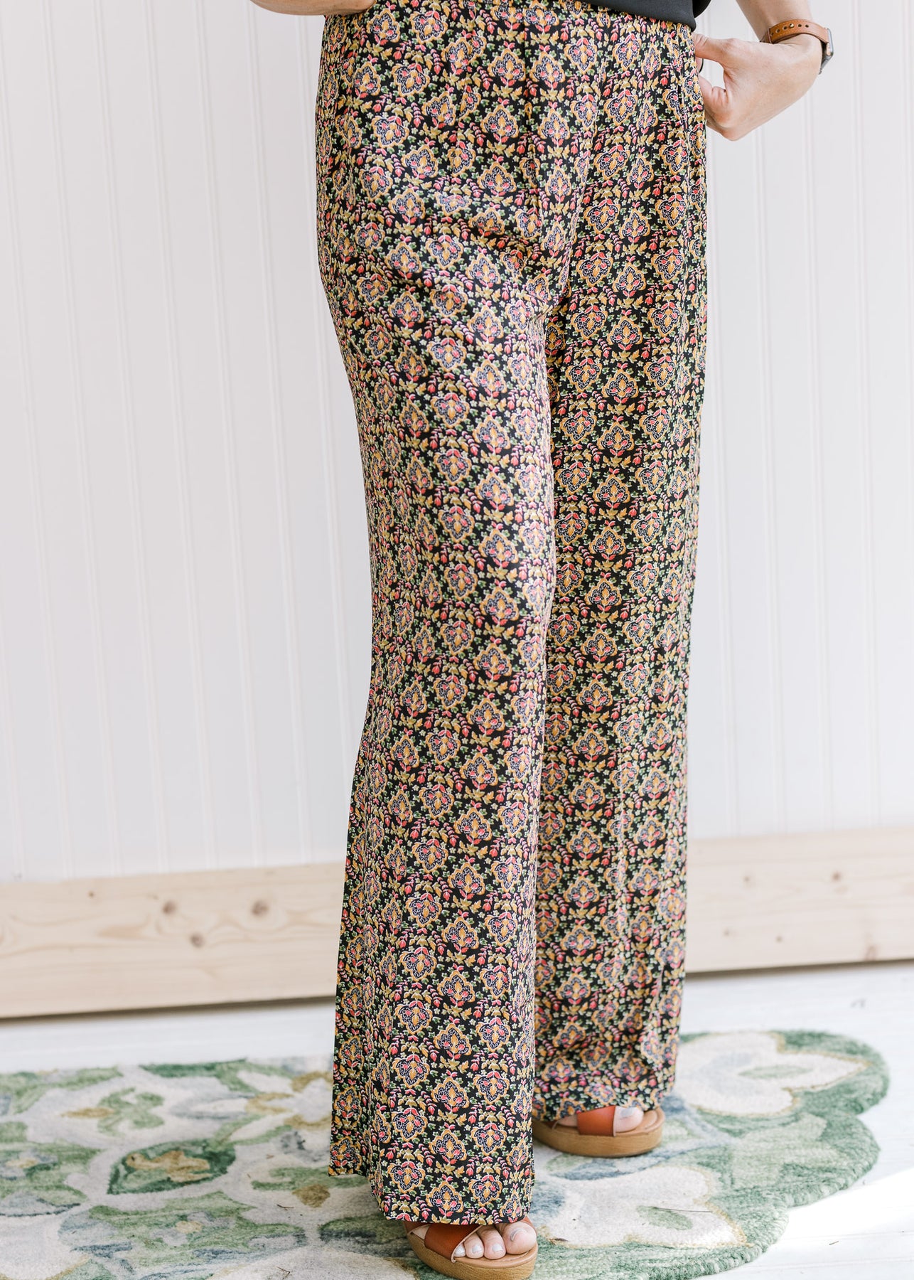 Enter the room in confidence and style with the Bold Move Black Patterned Wide Leg Pant.