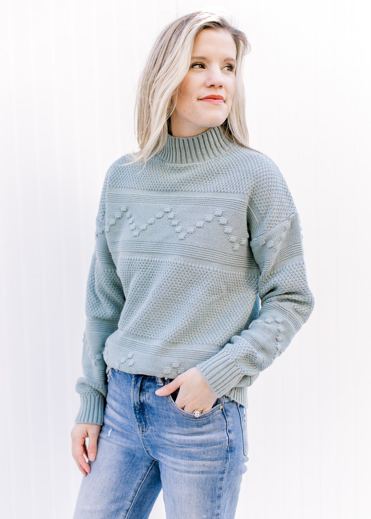 Our Blue Haze Pom Pom Sweater is such a dreamy color.